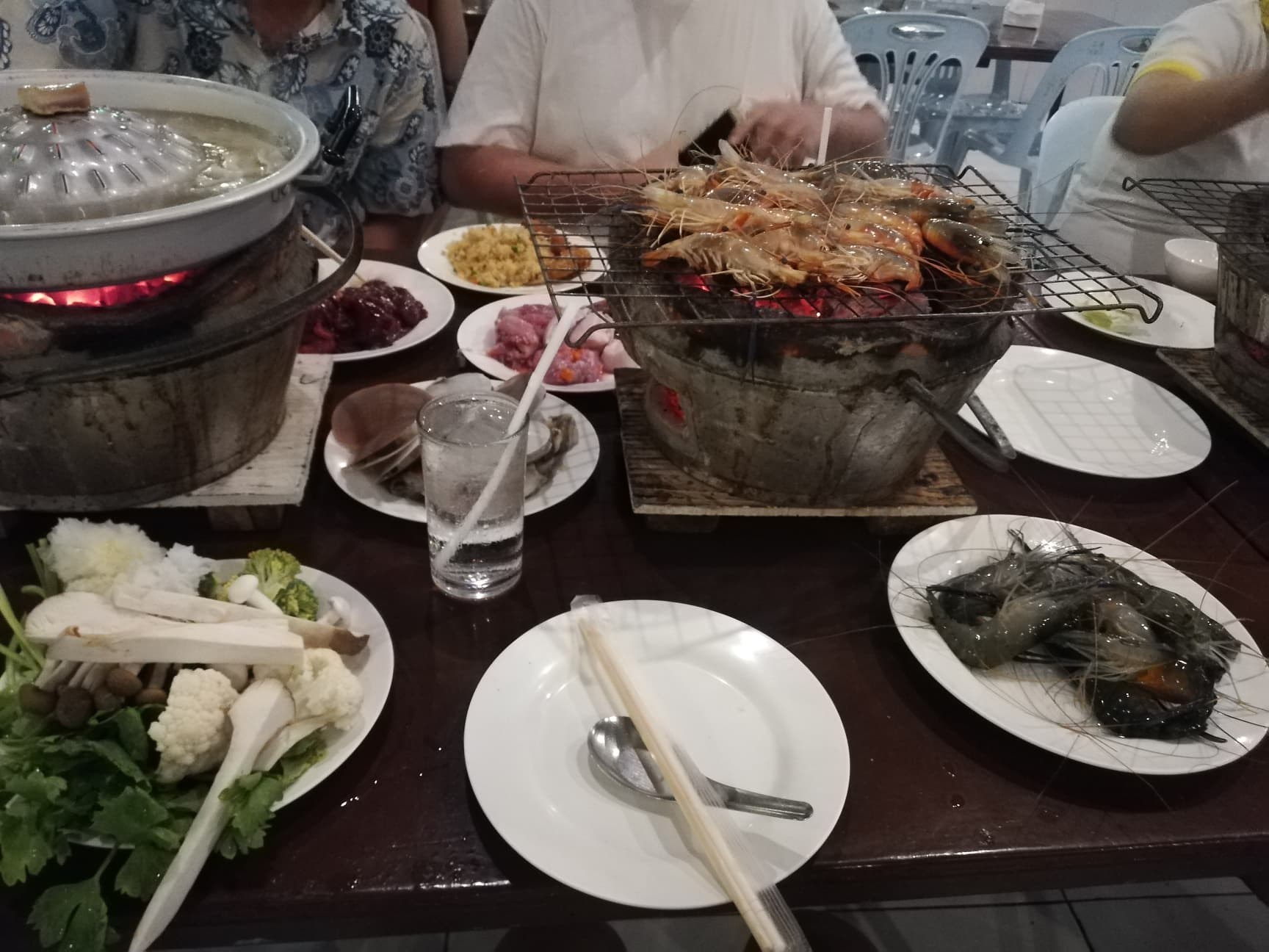 อาหารหลากหลาย แต่ถ่ายแค่บนเตา (- -* กุ้งเขามีแบบเพิ่งตายกับให้ตักในอ่างสดๆ =[]= วันที่ไปกินคือวันพระใหญ่ เพื่อนก็ตักกุ้งมา(น๊อคน้ำแข็งแล้วแต่คงไม่นานมากเลย) ดิ้นตกเตา (ไม่ได้กินกับเพื่อนนะตักที่ตายแล้วมากิน) รู้สึกดีที่ไม่ได้กินด้วย5555)
