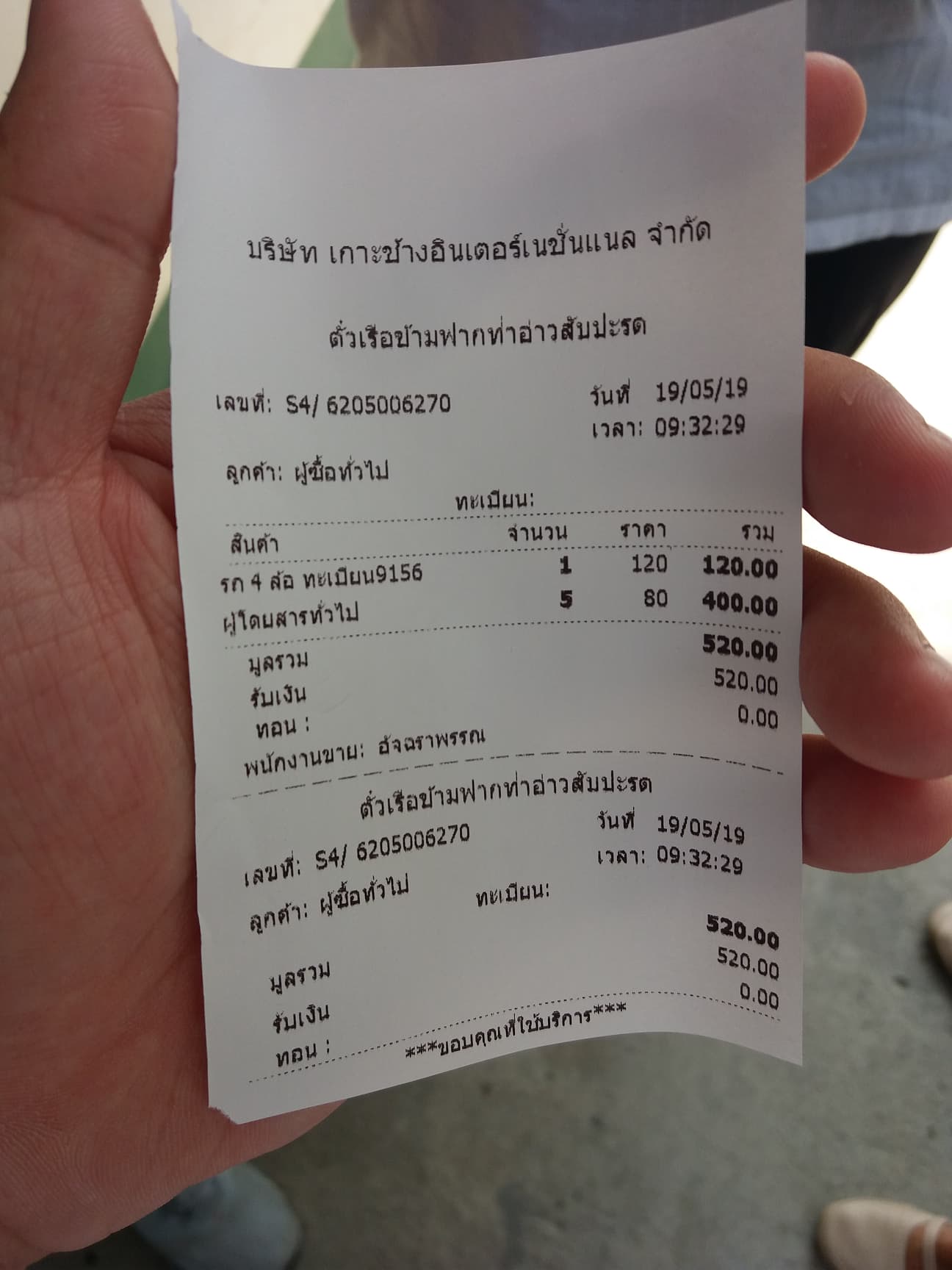 ค่าเรือ คนละ 80 บาท (ค่ารถหารกัน คนละ 24 บาท) (*2 (สองรอบ))