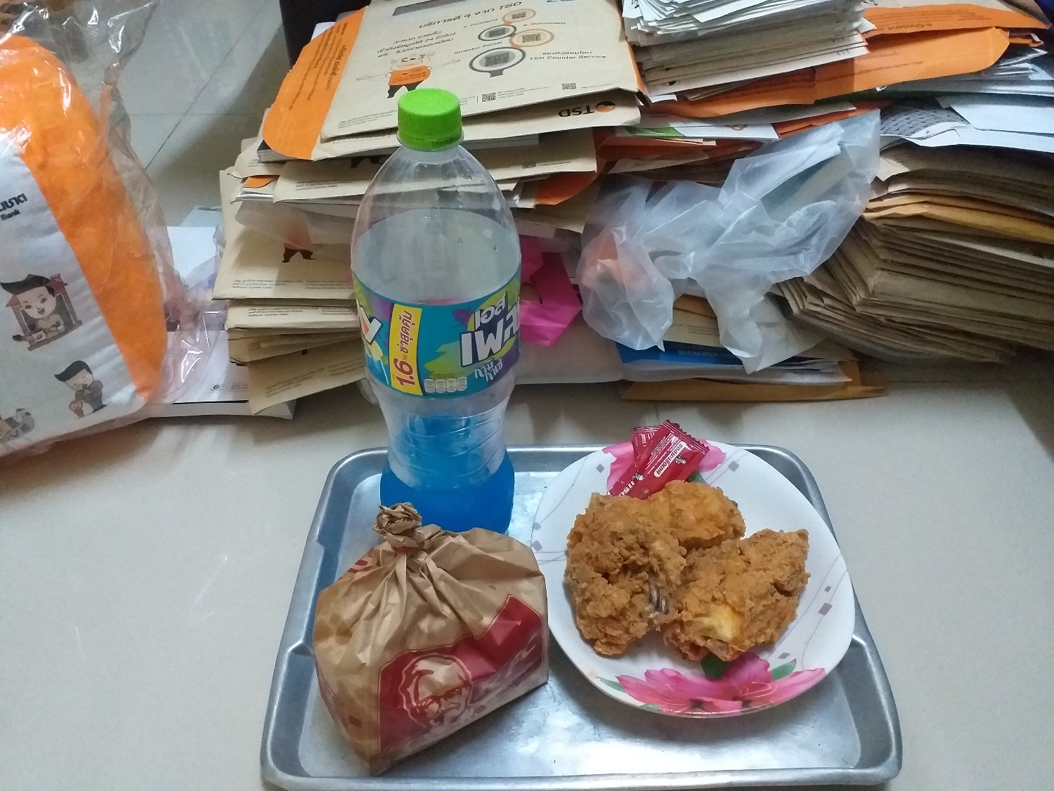 มี คนเอามาฝาก เลย ไม่ต้องเสียเงินกินข้าวข้างนอก