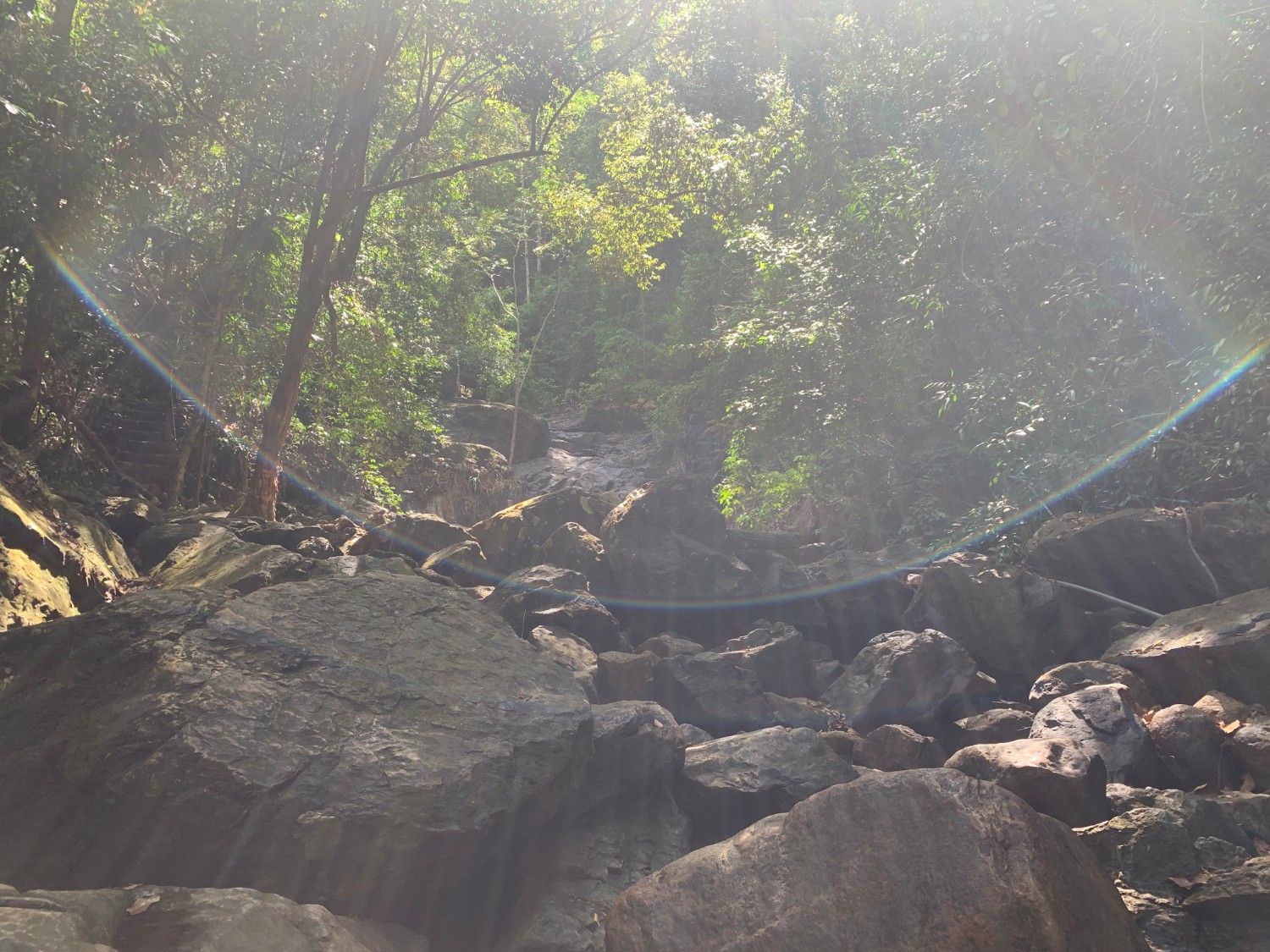 เช้าวันรุ่งขึ้นผมว่าจะไปเที่ยวน้ำตกสักหน่อย ผมขับรถไปทางไก่แบ้ และตรงขึ้นไปเรื่อยๆ ผมจำไม่ได้แล้วว่ามันคือบนถนนอะไร ใช้เวลาเดินทางจากโลลีบีชประมาณ 20 นาทีครับ ซึ่งตอนแรกว่าจะไปเล่นที่ น้ำตกธารมะยม พอเข้าไปปิดเพราะน้ำแห้ง เลยขับย้อนกลับมาน้ำตกคลองนนทรี น้ำก็แห้งมากเหมือนกันครับ เหตุเพราะว่า ผมดันไปเที่ยวในหน้าร้อน เลยต้องเจอชะตากรรมของน้ำที่แห้งเหือดไปตามระเบียบ ถ้าจะให้ดีไปตอนหน้าฝนดีกว่าครับ น้ำเต็มแน่นอน พอน้ำตกไม่มีเลยมีแค่ทางเลือกเดียวที่ผมจะได้เล่นน้ำก็คือการเล่นน้ำทะเลครับ ผมจึงแวะเล่นที่หาดไก่แบ้ หาดสวยไม่มีหิน คลื่นก็ไม่ค่อยแรง เหมาะแก่การเล่นน้ำชิวๆมากครับ