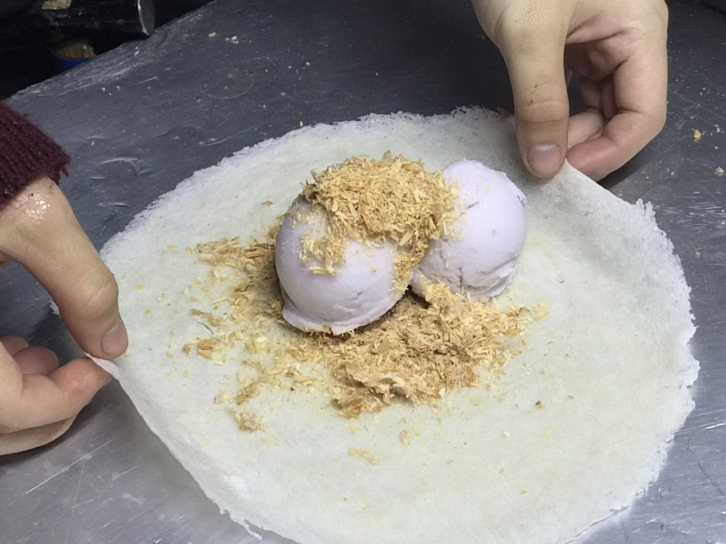 อันนี้ส่วนตัวชอบนะครับ เหมือนกินโรตีสายไหมใส่ไอติม แล้วใส่ผักชีให้มีกลิ่นหน่อยๆ