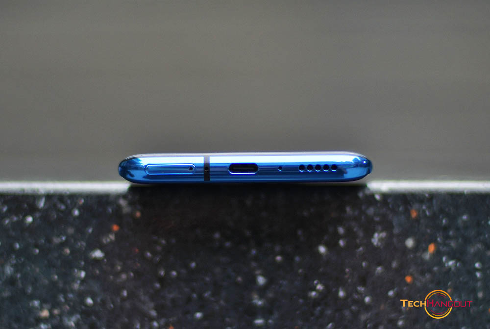 ขอบเครื่องส่วนล่างนั้นเป็นที่อยู่ ของถาดซิมแบบ Dual sim รูไมค์ และ ช่องชาร์จแบบ USB-C รวมถึง ลำโพงหลักของตัวเครื่องและในรุ่นนี้มีลำโพงคู่ ทำงานร่วมกันกับด้านบนนั้นเอง