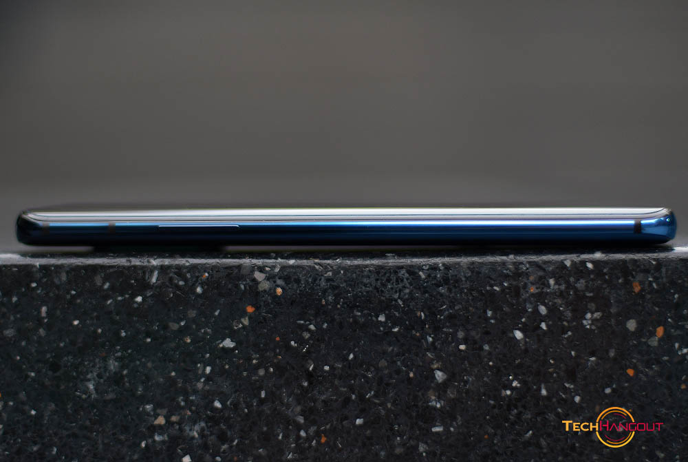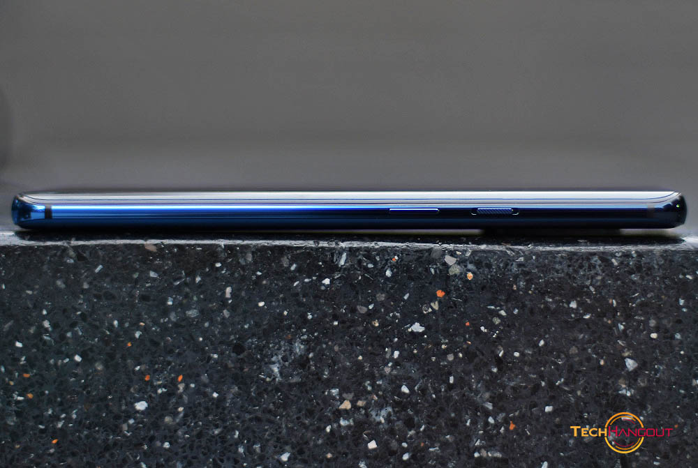 ขอบด้านขวาของตัวเครื่องนั้นจะเห็นถึงความโค้งทั้งหน้าและหลังของตัวเครื่องและกระจกหน้าจอและฝาหลังที่โค้งรับมือได้ดี และมีการไล่เฉดสีของตัวเครื่องด้วย ส่วนปุ่ม Power และ สวิทช์ เลื่อนเสียง นั้นยังมีมาให้อยู่ฝั่งนี้ทั้งหมด