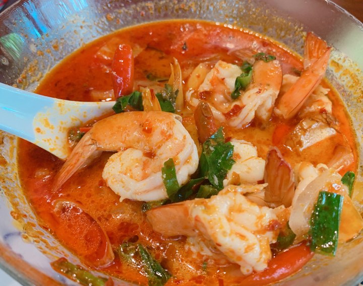 4.ต้มยำกุ้งน้ำข้น (ถ้าใครชอบเปรี้ยวเค้าก็มีมะนาวมาให้เพิ่มอีก1ซีก บีบเติมเองได้เลยค่ะ