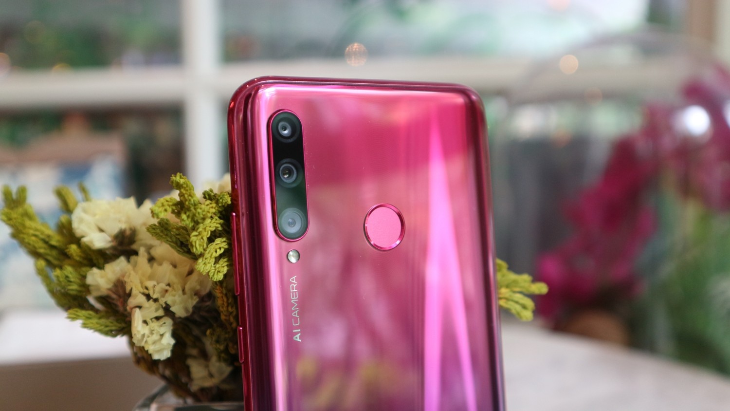 ด้านหลังจะประกอบไปด้วย กล้องหลัง 3 ตัว พร้อมไฟแฟลช และถัดลงมาจะเป็นตำแหน่งของปุ่มสแกนลายนิ้วมือ