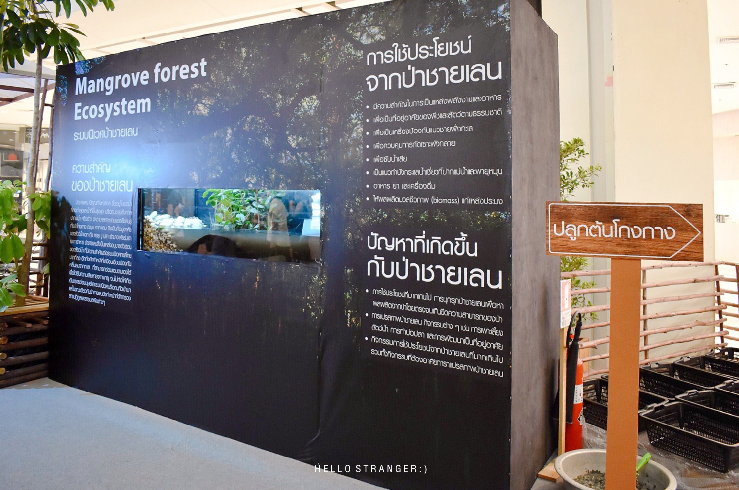 ภายในงาน จะเต็มไปด้วยต้นไม้สีเขียว บรรยากาศเหมือนยกตลาดริมน้ำมาไว้ในห้างกลางกรุงกันเลยทีเดียว ถูกใจคนรักธรรมชาติแบบเรามากๆ มีมุมถ่ายรูปเก๋ๆ ชิคๆ และยังมีโซนปลูกต้นโกงกางอีกด้วย ซึ่งเป็นกิจกรรม "เพาะกล้า สร้างป่า อาสามาทำดี" ในโครงการปลูกป่าในใจคน ตามศาสตร์พระราชา เพื่อส่งมอบสู่ผืนป่าชายเลนเขตบางขุนเทียนต่อไป