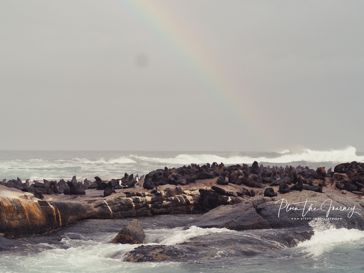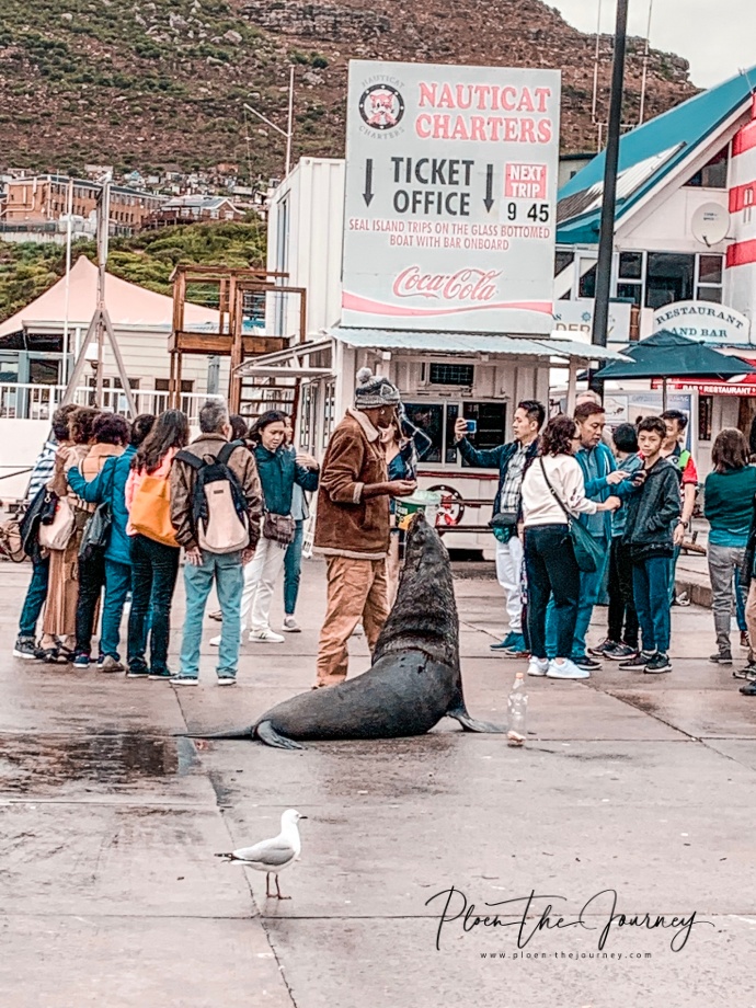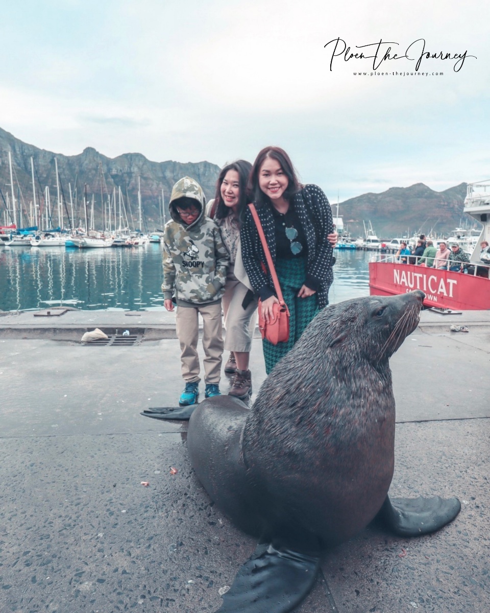 มาถึง Hout Bay เพื่อขึ้นเรือไปเกาะแมวน้ำ หรืออุ๋งๆ แลนด์ของเรานั่นเอง บนชายฝั่งจะมีแมวน้ำโชว์เรียกแขกก่อนตัวนึง ถ้าถ่ายรูปต้องเสียเงินนะคะ ไม่งั้นคนเลี้ยงไม่ยอมค่ะ