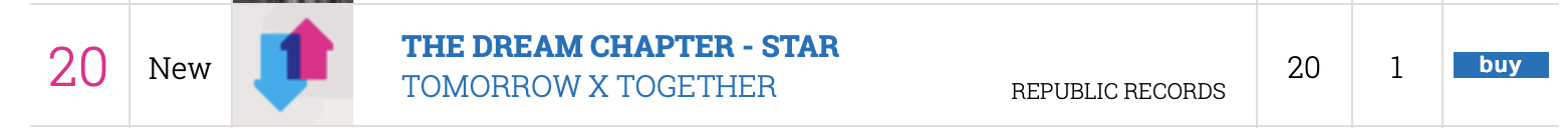 TXT ได้พาอัลบั้มเปิดตัว The Dream Chapter: STAR ติดอันดับชาร์ตต่างประเทศเป็นครั้งแรกโดยมีรายละเอียดดังนี้