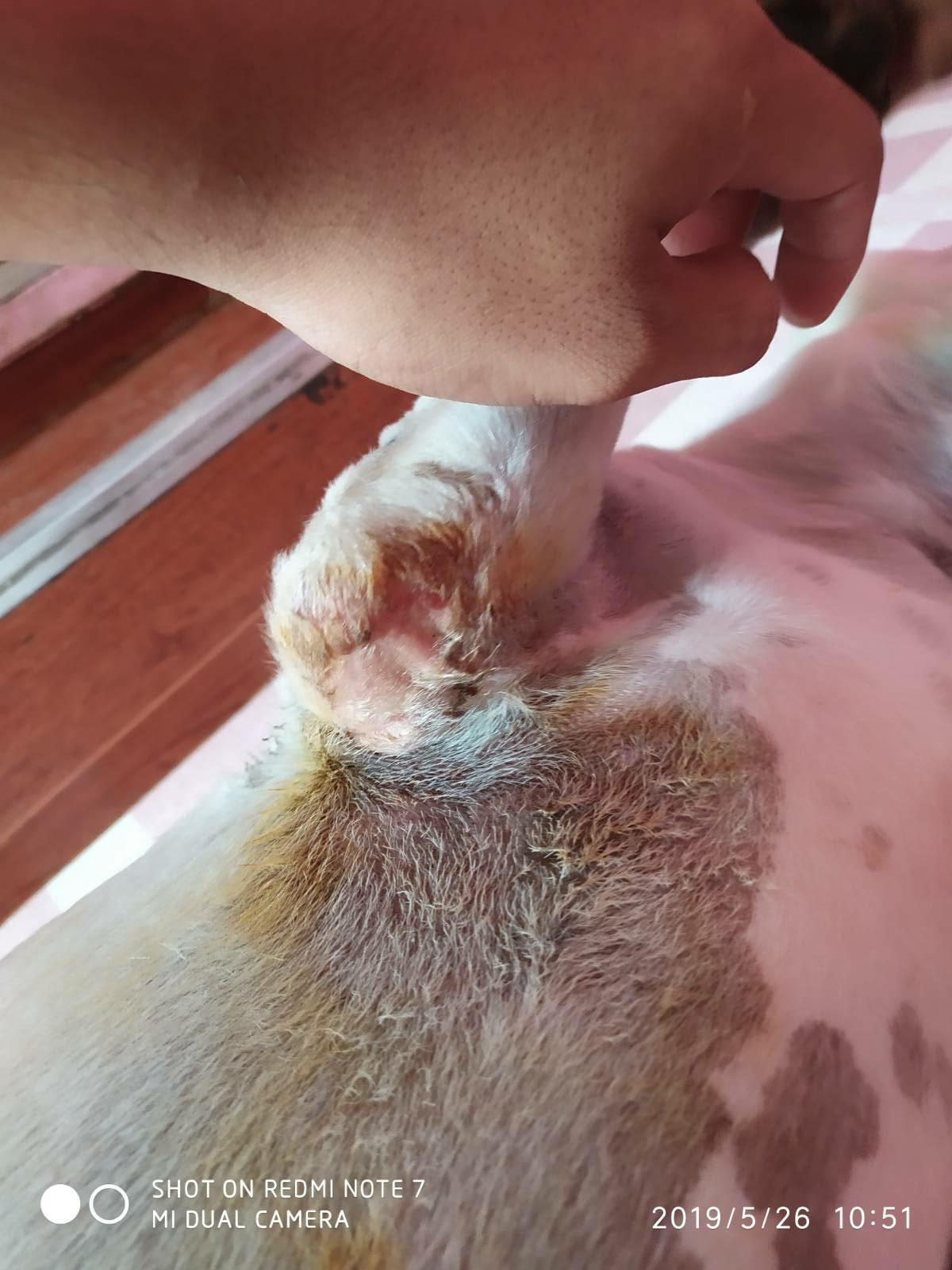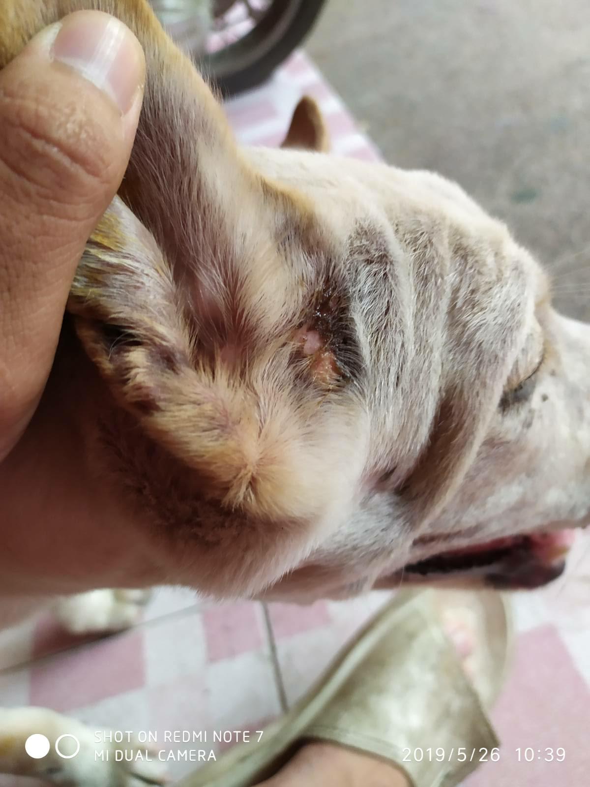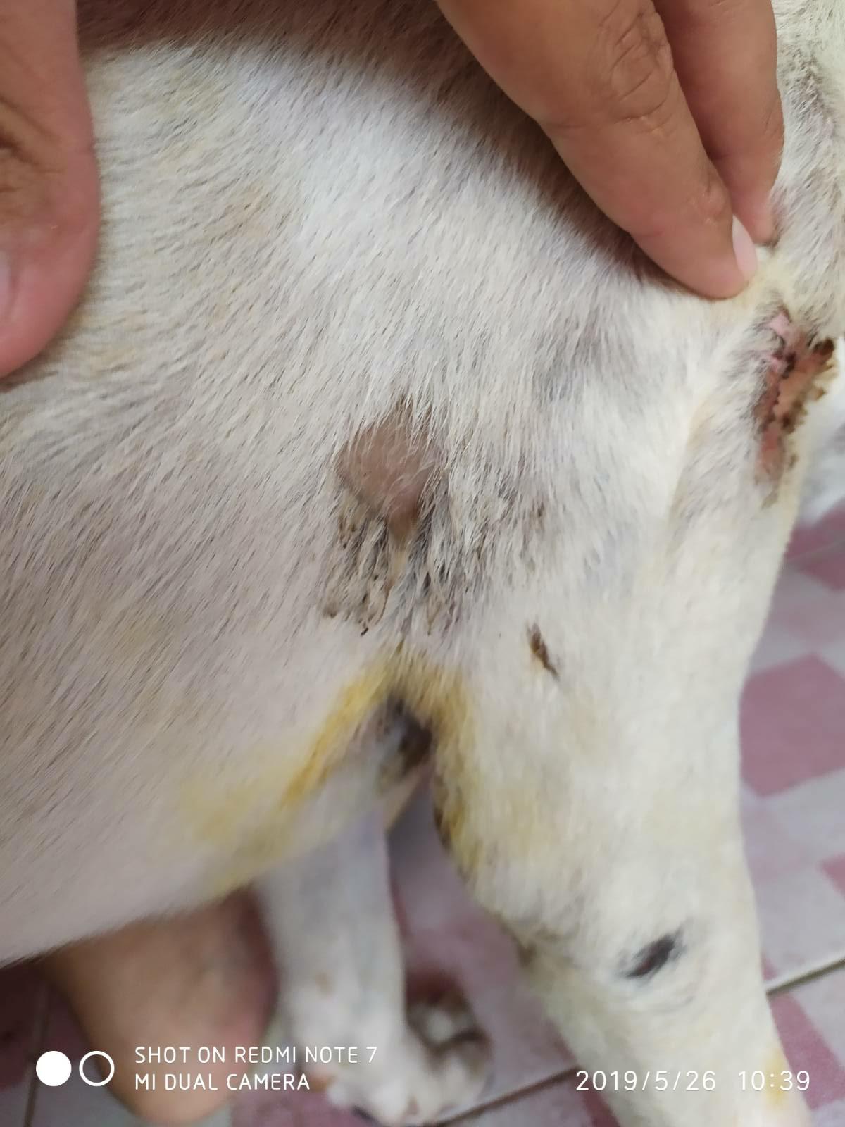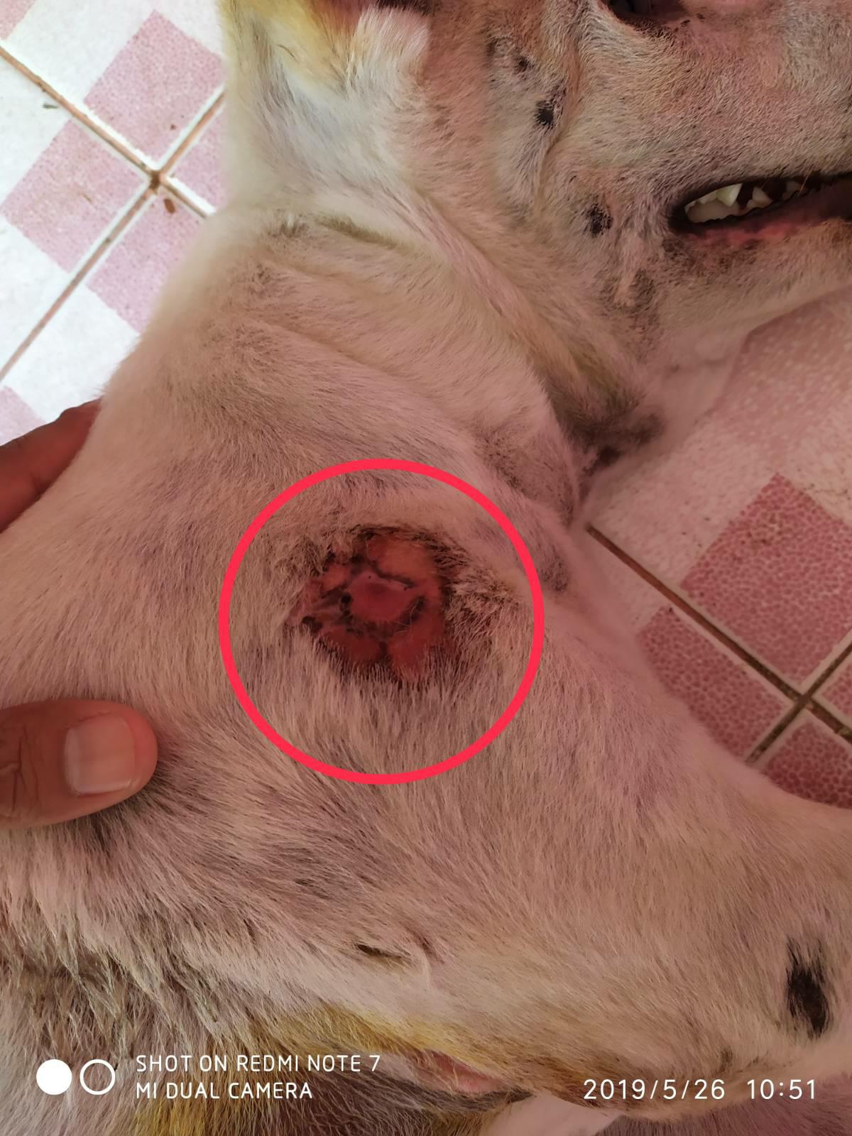 อยากสอบถามอาการสุนัขอยู่ก็มีแผลเปื่อยขึ้นมาครับ