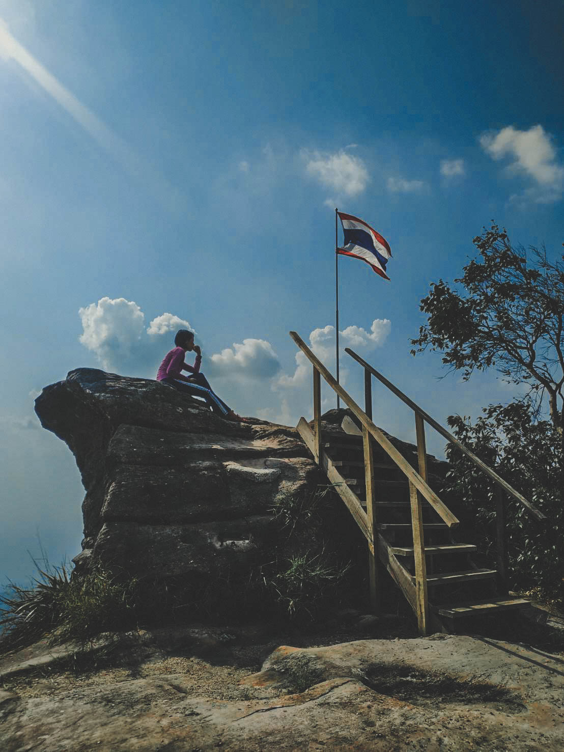 ผาชูธง ในอดีตจะชูธงสีแดงของกลุ่มคอมมิวนิสต์ แต่หลังจากเคลียร์พื้นที่แล้วจะใช้ธงชาติไทยชูขึ้นแทน