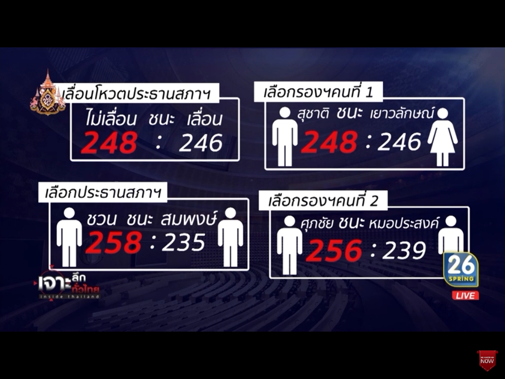 ▪รองประธานสภาฯคนที่ ๒.... คะแนน ๒๕๖ : ๒๓๙ ( ต่างกัน ๑๗ คะแนน )