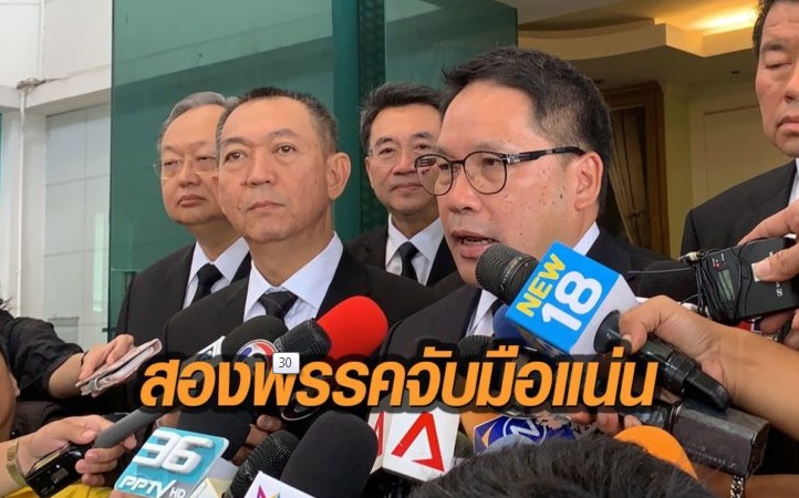 แกนนำพปชร.-ปชป.จับมือแน่นร่วมตั้งรบ. ชี้เป็นจุดเริ่มต้นที่ดี “เสี่ยต่อ”ยื่นเงื่อนไขต้องแก้รธน.