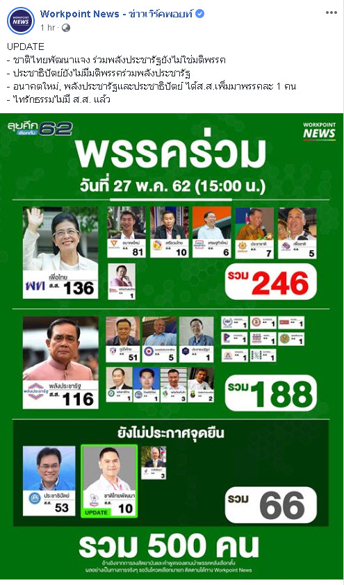 ถ้าพรรคเพื่อไทย เสนอชื่อ คุณจุรินทร์ หัวหน้าพรรคประชาธิปัตย์ ชิงตำแหน่งนายกฯ คะแนนโหวตจะออกมายังไง
