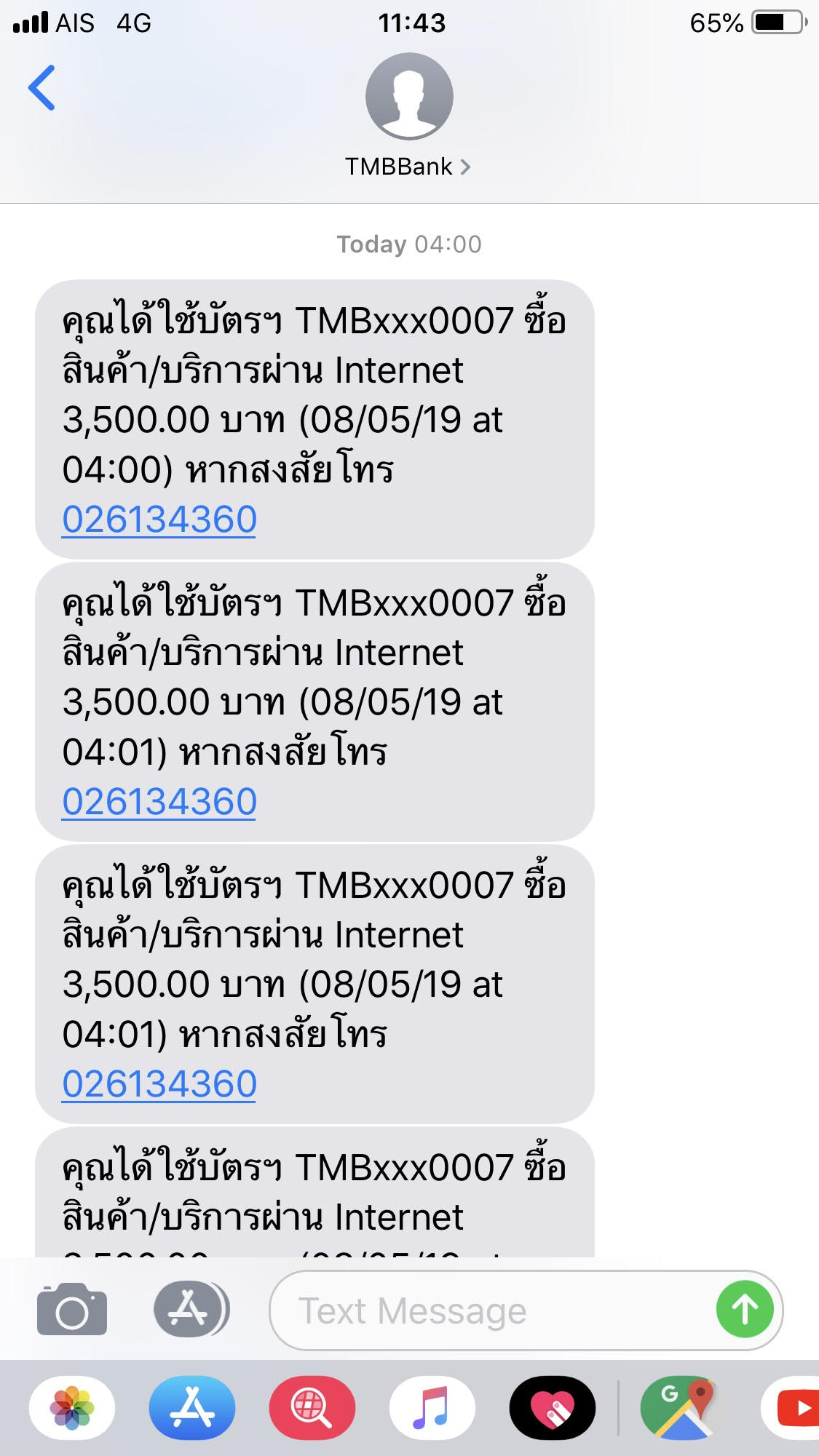 TMB ว่าบัตรของท่านมีการรูดใช้บัตร 3,500.00 บาท ผ่าน internet แต่ที่มันไม่ปกติ