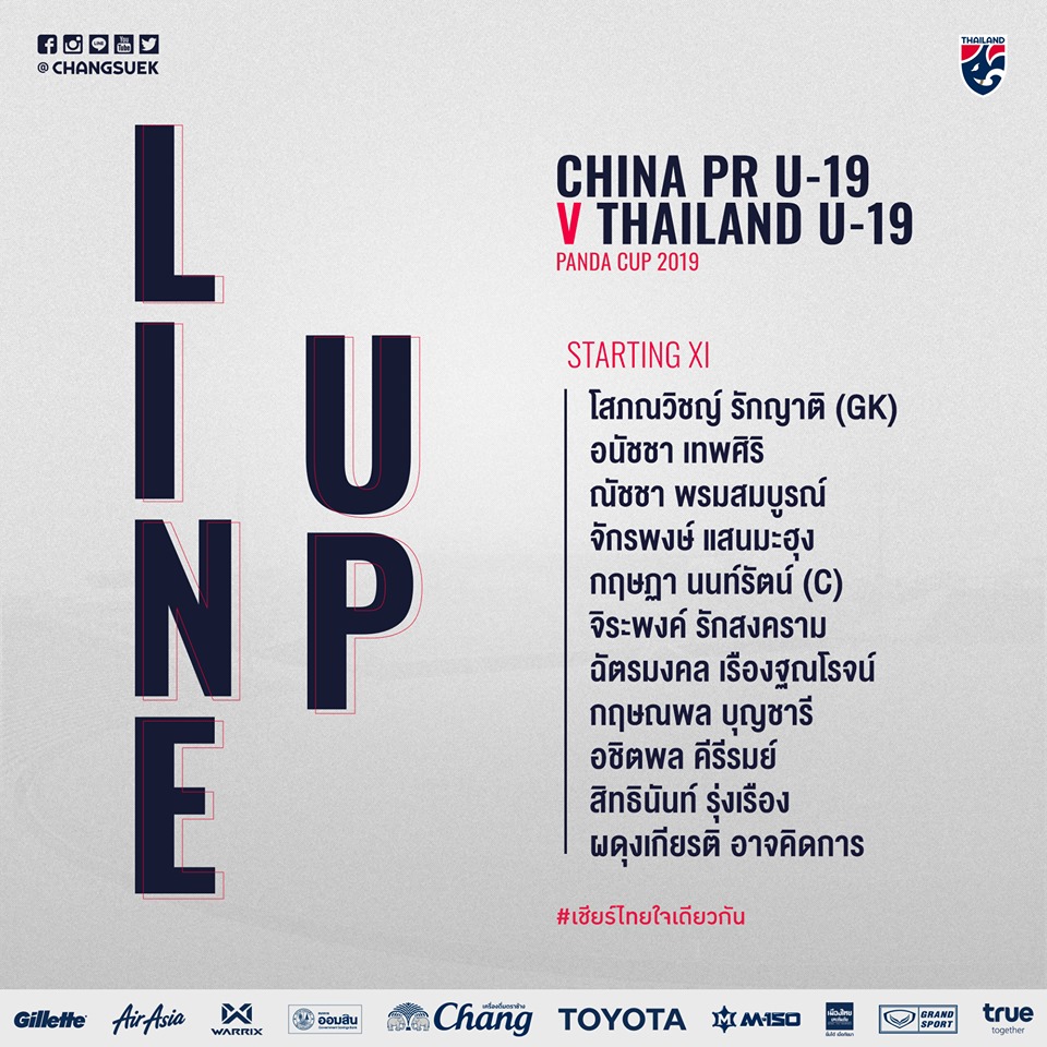 ทีมชาติไทยU19 พบ ทีมชาติจีนU19 ที่ สนาม ชองหลิว สปอร์ต เซนเตอร์ สเตเดียม ในวันที่ 27 พฤษภาคม 2562 เวลา 18.00 น. ตามเวลาประเทศไทย