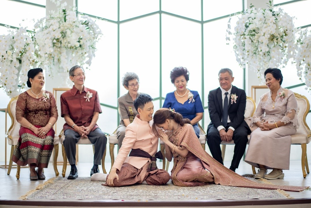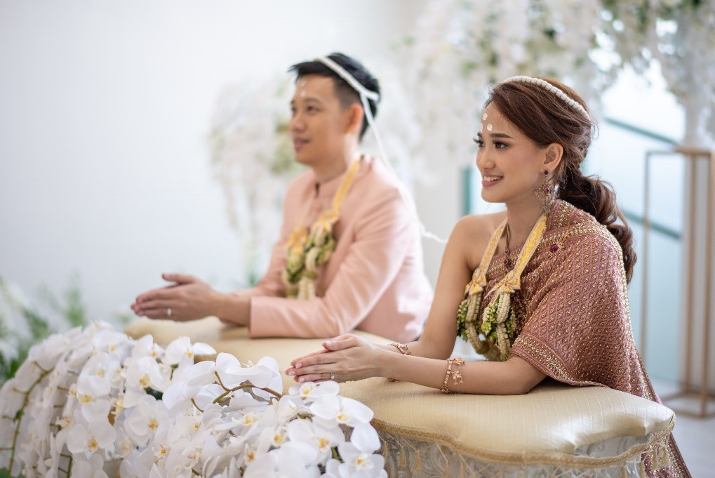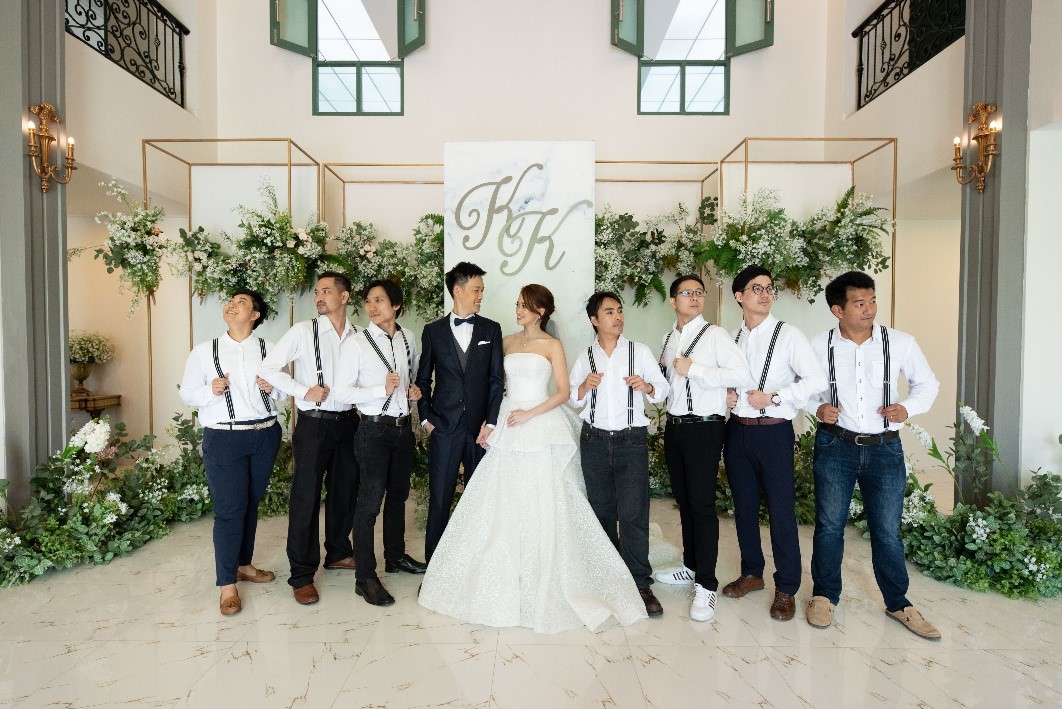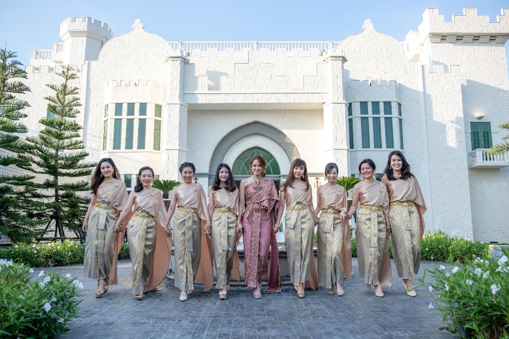 ชุดแต่งงานของเจ้าบ่าวและเจ้าสาวทั้งหมด 4 ชุด (ชุดเช้า 2 ชุดเลี้ยงฉลอง 2), ชุดเพื่อนเจ้าสาว- เพื่อนเจ้าบ่าว