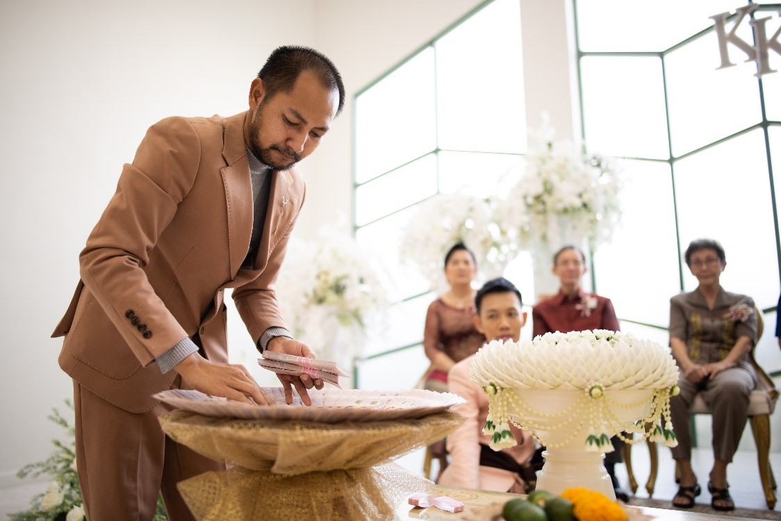 พี่โก้ก็มาช่วยงานเราเป็นอย่างดี ช่วยดำเนินงาน ช่วยจัดเรียงสินสอด ตรวจดูความเรียบร้อย เป็นธุระให้หลายๆอย่าง เราประทับใจในตัวพี่โก้มากเลยค่ะ