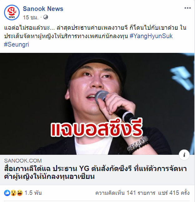ข่าว ประธาน YG กับความเห็นของคนไทย(บางส่วน)