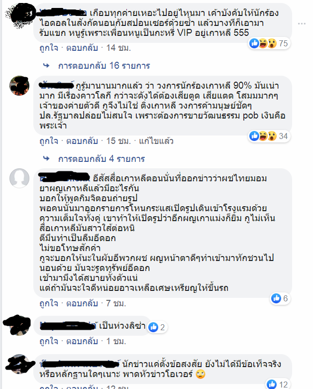 เมื่อวานเพจ sanook new ได้นำเสนอข่าวประธาน YG อ่านความเห็นแล้วก็ตกใจ โดยเฉพาะ 2 อันดับแรกที่มีคนกดไลด์มากที่สุด เข้าใจว่าพวกนี้เป็นคนส่วนน้อย แต่อ่านแล้วก็อดเศร้าใจไม่ได้ ส่วนตัวคิดว่าการแสดงความเห็นแบบนี้น่าจะต้องสมควรรับผิดชอบอะไรบ้างนะครับ และเห็นชัดๆว่าข่าวแบบนี้ส่งผลกระทบต่อค่ายและศิลปินอย่างไรบ้าง ไม่ว่าผลสุดท้ายประธานหยางจะผิดจริงหรือเป็นผู้บริสุทธิ์ก็ตาม