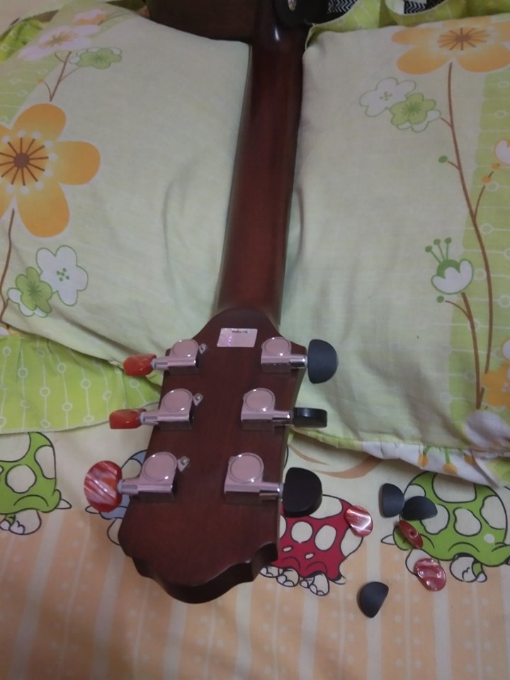 กีต้าสเปคนี้ความสวยการตกแต่ง ไม่ได้มาแต่กำเนิดเพราะได้ไม้หน้าแท้มา ก็เลยต้องมา ประดับเอง ลองดู