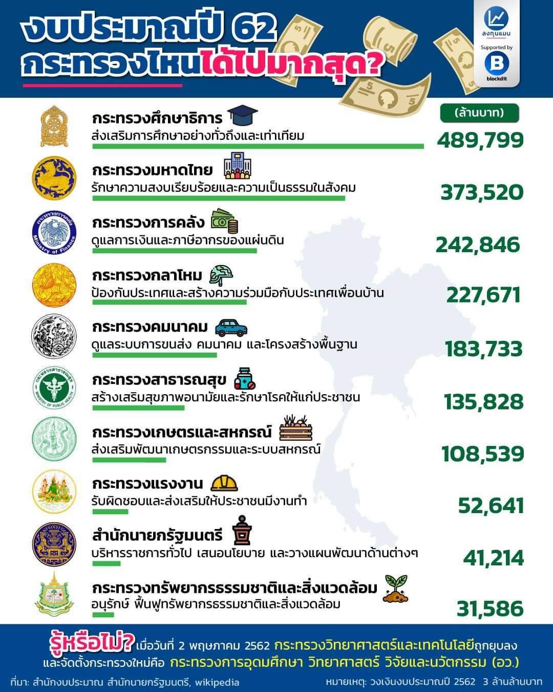 คลอดแล้ว งบประมาณแต่ละกระทรวงปี 2562