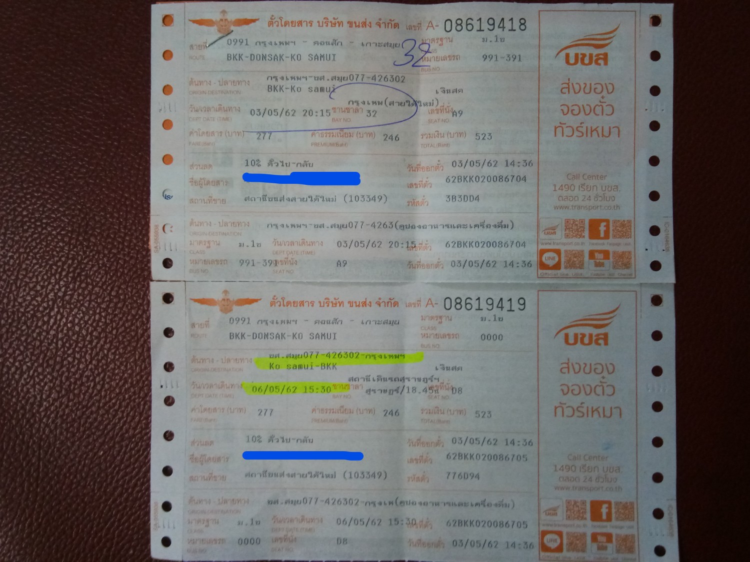 1.ค่ารถไป-กลับ กทม.-สมุย=1,046.-