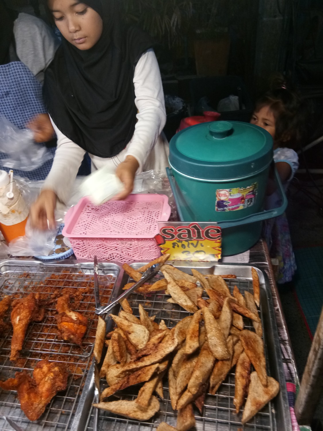 แต่เอาเข้าจริง หมดแรงมาก ออกมาหาไรกินแป๊บเดียว ก็กลับละ... ไม่ได้เดินทั่ว ... เท่าที่เห็นก็ขายของฝาก ของจุกจิก เหมือนตลาดทั่วไป แต่ร้านจะเยอะมาก ... ของกินก็เยอะมากจริง ... เจอนี่ ...กือโปะ .... อาหาร (เอ๊ะ เรียกอาหาร หรือขนมดี) ใต้ ... คล้าย เต้าหู้ปลาทอด ...นี่เพิ่งขึ้นจากเตาเลย เห็นร้อนๆ เลยซื้อมาลองกิน หร่อยดี เพลินๆ
