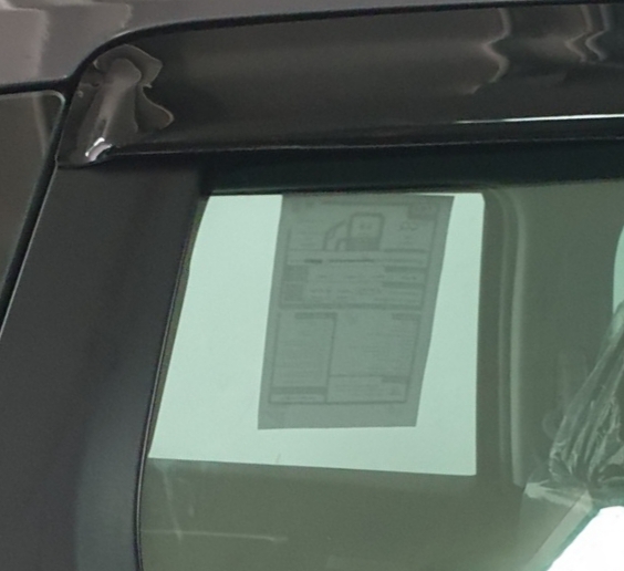 พอดีเซลล์นัดมาตรวจความพร้อมก่อนที่จะรับรถในวันพรุ่งนี้ กำลังติดฟิล์มกรองแสง เลยถ่ายภาพมาใบนึงและกลับมาถึงบ้าน เลยเปิดดูภาพ เห็นกระดาษสีขาวๆที่แปะข้างกระจก คือตัวที่โชว์หรือเปล่าครับ