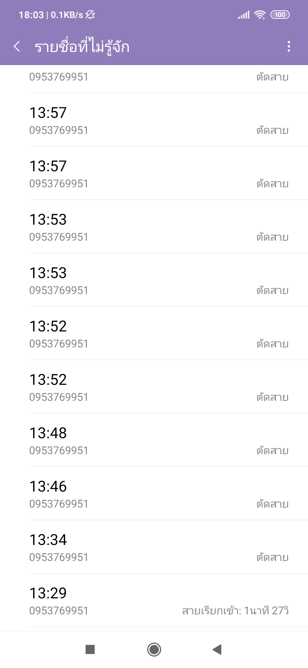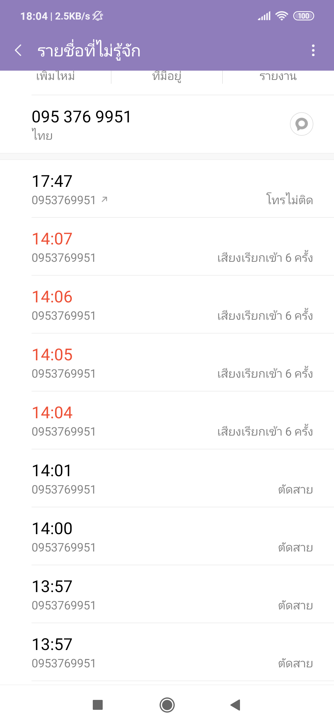 หลังจากนั้น 5 นาที เบอร์นี้ก็โทรมาใหม่แต่เราไม่สะดวกรับ เราเลยตัดสายไป แล้วเค้าก็โทรเข้ามาใหม่ซ้ำๆอยู่แบบนั้น ตามภาพเลยค่ะ