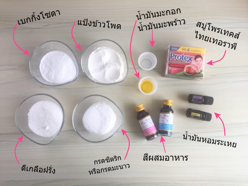 ซึ่งนี้เป็นการทำ Bath Bomb ครั้งแรกของเราเลย มาดูกันว่าจะสำเร็จไหม!! ส่วนประกอบมีอะไรบ้างไปดูกันค่าาา