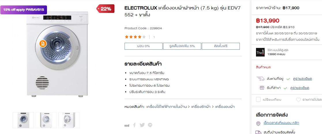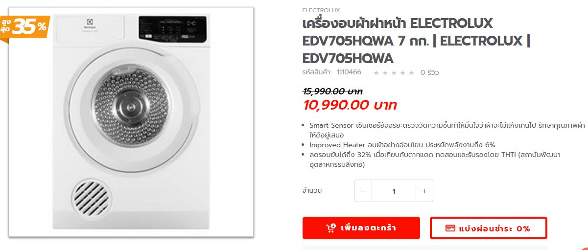 เครื่องอบผ้าฝาหน้า ELECTROLUX แบบลมร้อน 2รุ่นนี้ต่างกันอย่างไรครับ