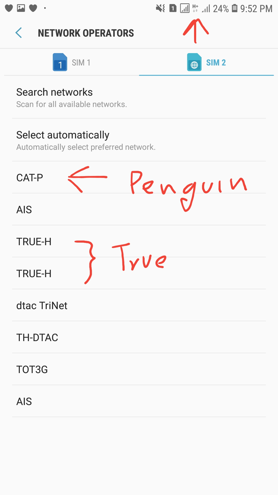 E.g. ของ Truemove ถ้าเลือก TRUEMOVE Hจะขึ้น H+ แต่ถ้าเลือก TRUE-H สัญญาณมันจะขึ้น 4G เลยครับ