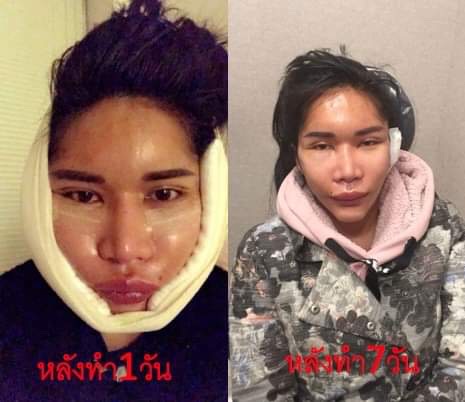 หลังทำลดโหนก วีไลน์ที่ไทยครั้งที่1ค่ะและจากนั้นไปซีทีสแกนดูปรากฎว่ากระดูกไม่ติดกันค่ะ
