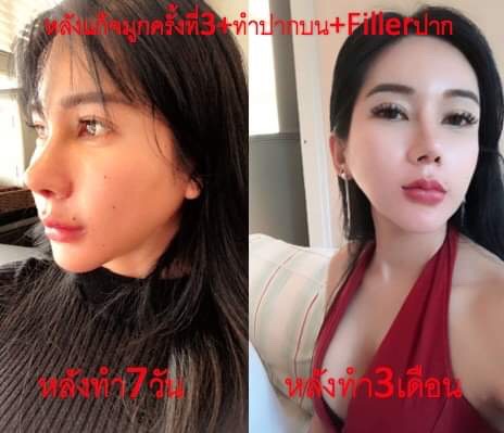 นี้น้องบีเป็นคนหาข้อมูลให้ทั้งหมดค่ะ)และรอบนี้เราทำปากด้วย ร พ ทำปาก กะ จมูกรอบที่3 คนละ ร พ กันนะคะ ปูนาทำปากวันที่4 ม ค 2019 (ยกมุมปาก และยกมุมปากจะมีแผลเป็นด้วยซึ่งคุณหมอได้แจ้งก่อนทำแล้วค่ะ+ ทำคิ๊วปิดกะฉีดฟิวเลอร์ริมฝีปากล่าง) ส่วนจมูกรอบที่3 ได้คิววันที่12 ม ค 2019วันที่ไปปรึกษา คุณหมอก้อเอารูปจมูกเราให้ดูในคอมว่าก่อนทำและหลังทำจมูกเราจะอออกมาลักษณะแบบไหนบอกน้องล่ามให้บอกหมอไปว่าเอา เชิดๆ พุ่งๆไปเลยค่ะ ลืมบอกว่าทุกครั้งที่ทำการนัดหมอ ปูนาผ่านล่ามหมดทุกครั้งค่ะ น้องล่ามน่ารักมาก อัธยาศัยดีมากๆ ช่วยเหลือดีมากๆค่ะจนปัจจุบันเป็นเหมือนพี่กับน้องไปละ ทั้ง น้องล่าม พี่เอ น้องบี ^^ มาต่อกันค่ะเรื่องจมูก ครั้งนี้