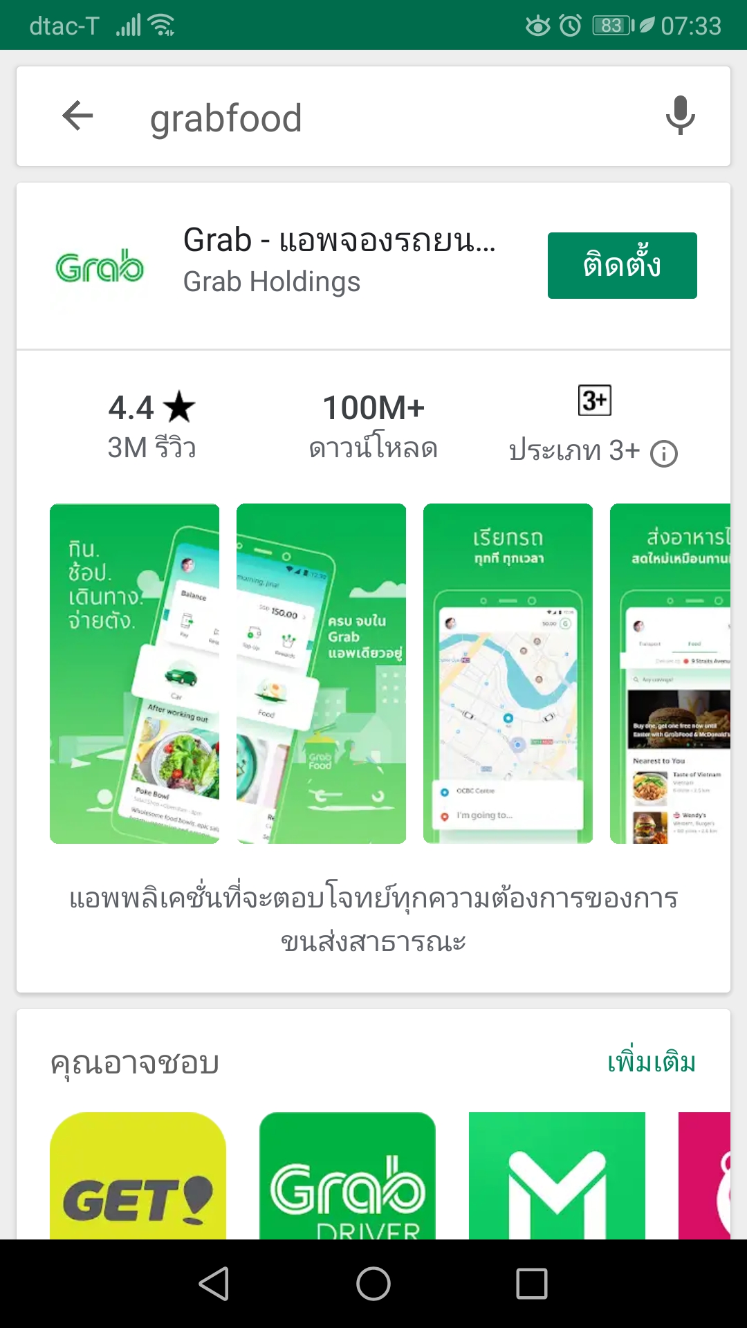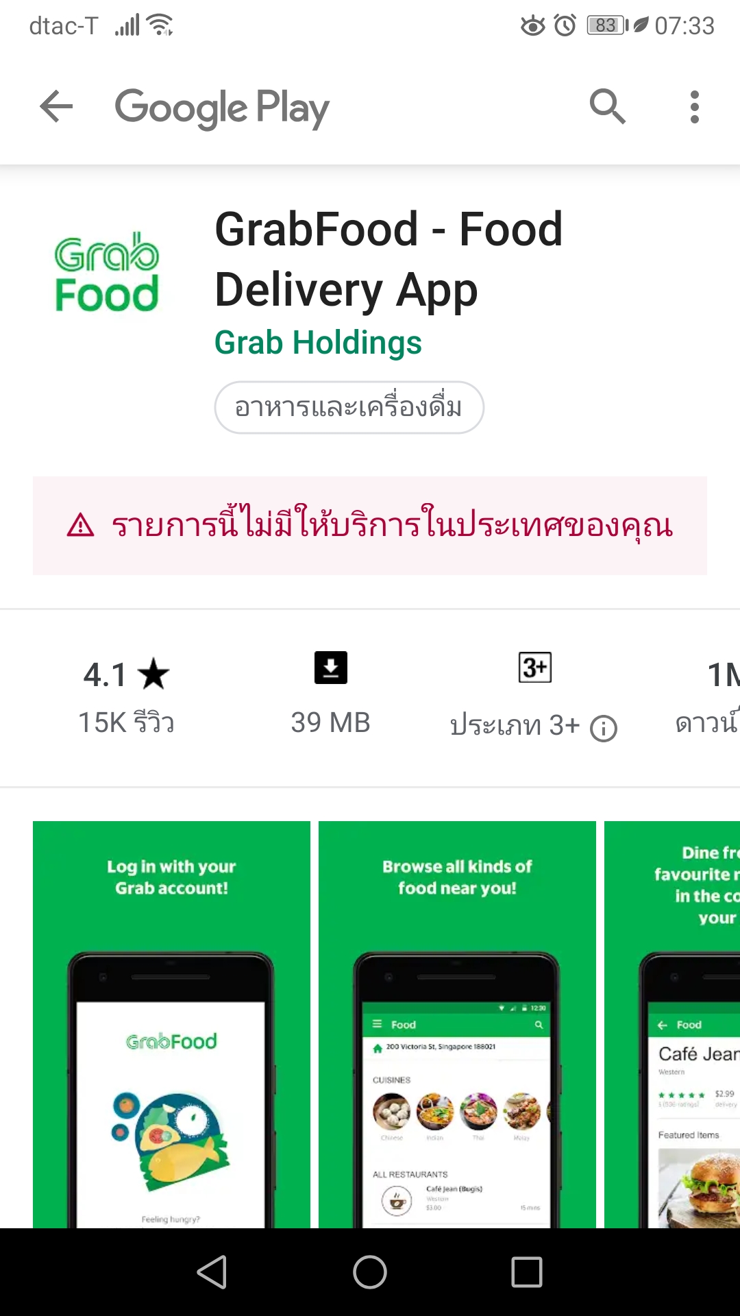 อยากลองโหลดแอพมาใช้ค่ะ แต่ทำไมเจอแต่แอพที่ใช้เรียกรถ พอไปหาชิ่อแอพ grabfood จาก google จะติดตั้งก็บอกว่าแอพนี้ไม่มีให้บริการในประเทศ