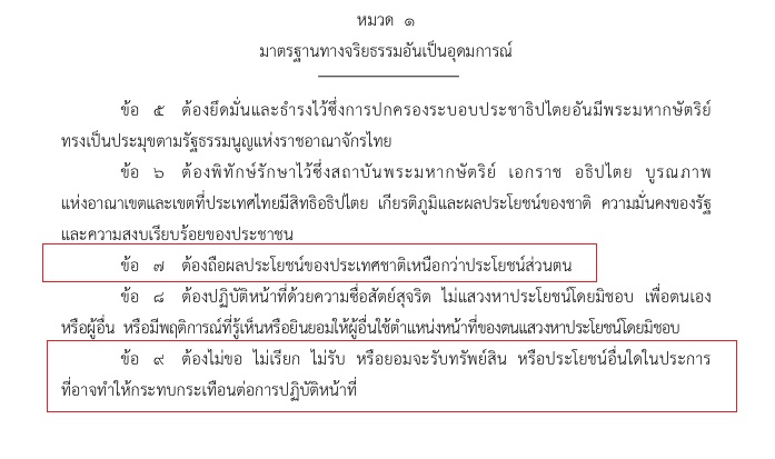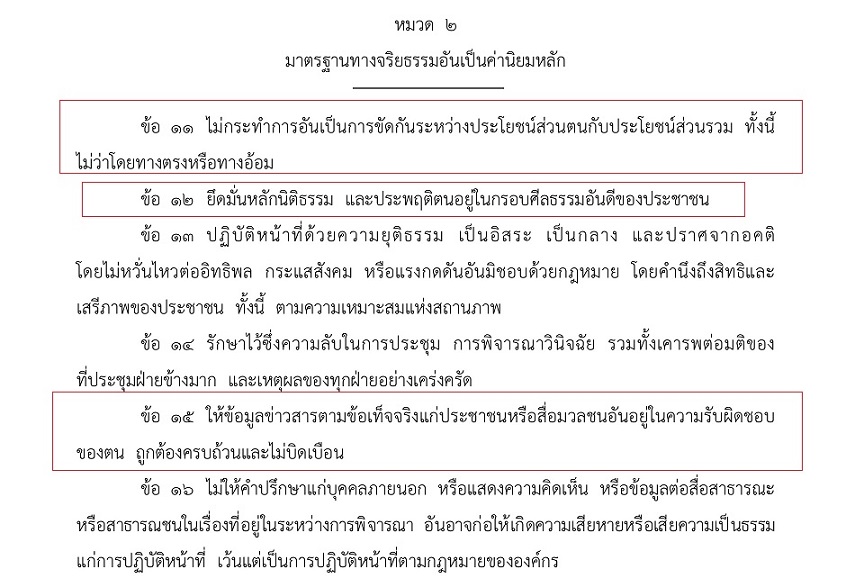 ในรัฐธรรมนูญ 60  มาตรา 219 ได้ระบุให้ศาลรัฐธรรมนูญร่วมกับองค์กรอิสระ กําหนดมาตรฐานทางจริยธรรมขึ้น
