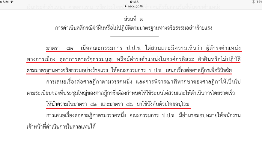 เมื่อเข้าข่ายความผิด ปปช ต้องทำหน้าที่ตรวจสอบ ถ้ามีมูล ก็ฟ้องไปที่
