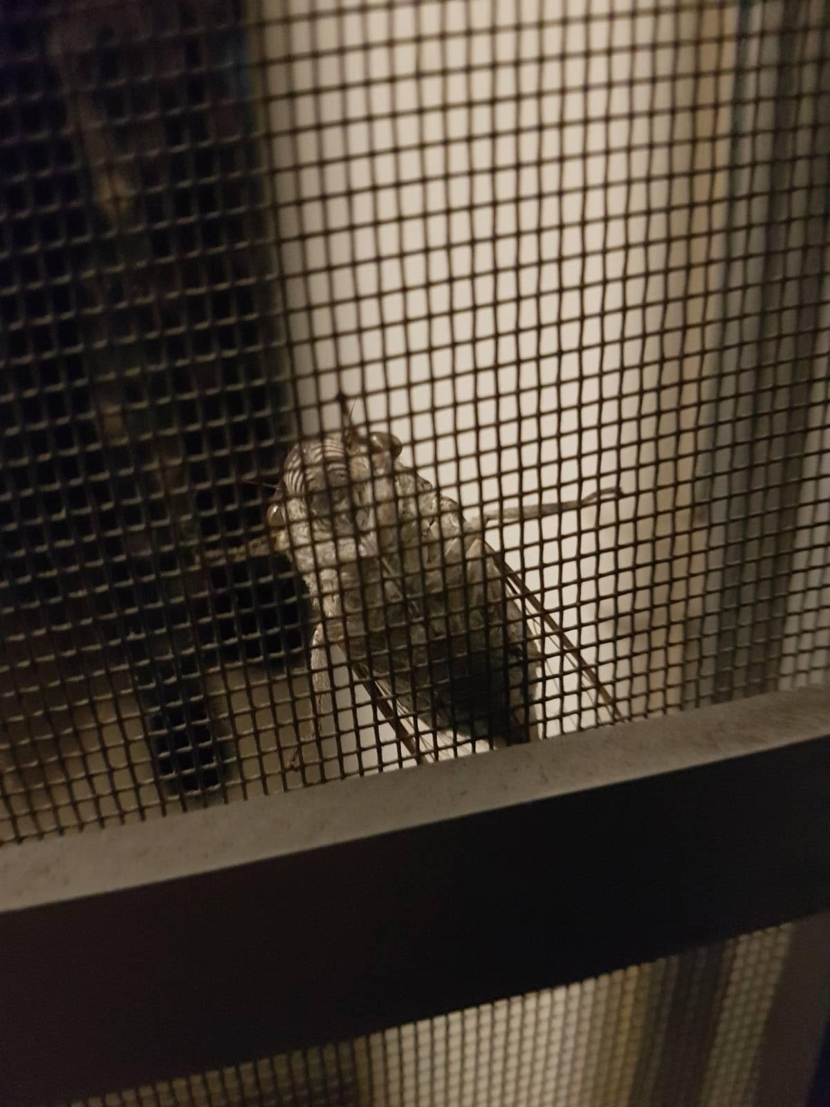 ตอนกลางวันที่เจอเห็นมันนอนหงายท้องอยู่เลยคิดว่าตายแล้ว พรุ่งนี้กะจะมากู้ภัย แต่พอตอนกลางคืนมันคืนชีพมาเกาะอยู่ที่มุ้งลวด ถ่ายรูปมาได้แค่นี้จริงๆ 😭