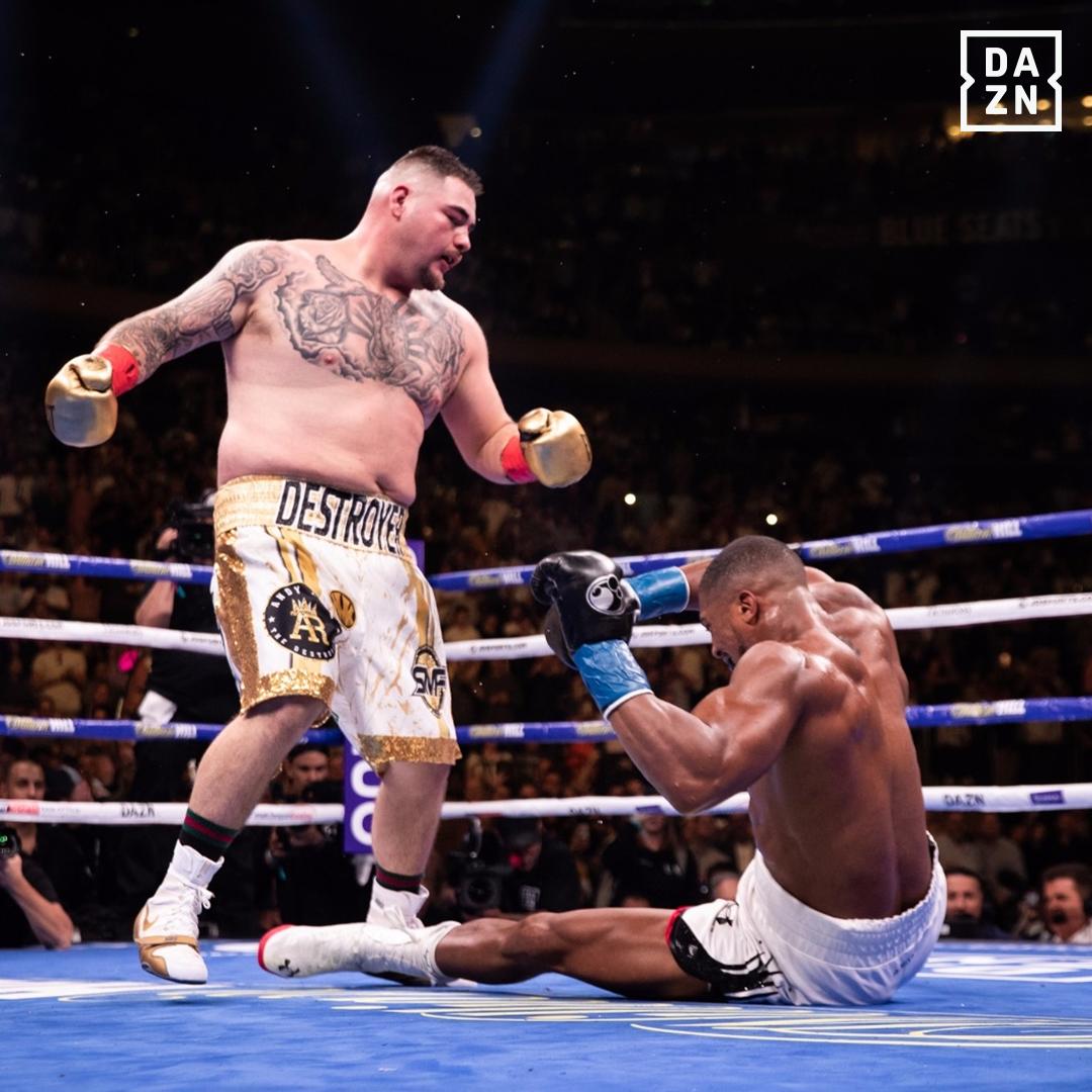 กรรมการยุติการชกในยกที่เจ็ด เพราะโจชัวซึมไม่ตอบสนองคำสั่งกรรมการที่ให้เดินออกจากมุมหลังจากถูกชกล้มลงไปนับ