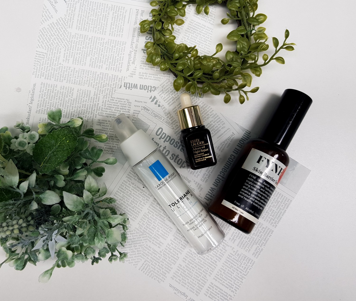 อิฉันเลือกใช้ La roche posay toleriane ultra light intense soothing fluid face and eyes ปั๊มไปสัก 2-3 ปั๊ม ทาทั่วใบหน้าและลำคอ สำหรับตัว Light จะเหมาะกับผิวมัน นางดีที่ทำให้ผิวอิ่มน้ำในช่วงเช้าและไม่ทำให้ผิวมันเพิ่ม ยิ่งผิวแพ้ง่ายก็ให้เค้าเลยเพราะเค้าอ่อนโยน ปลอบปละโลมผิวได้ดีเกินคาดหวัง ส่วนสกินแคร์ก่อนนอน ดิฉันคงหนีไม่รอด Estee lauder advanced night repair ซื้อขวดจิ๋วมาทดลองใช้จาก eve and boy บอกได้แค่ว่าต้องซื้อ จะซื้อต่อและจะซื้อขวดใหญ่ด้วย หึ ! นางซึมไว ไม่มีส่วนผสมของน้ำมันที่จะทำให้อุดตันผิวเพิ่ม ฟื้นฟูผิวได้ดีมาก นอนน้อย ดื่มน้ำน้อย นางช่วยได้ รูขุมขนตรงช่วงหน้าแก้ม จมูก ดูกระชับขึ้นมาก วันไหนไม่ใช้เหมือนจะตาย เสพติดหนักมาก ช่วงนี้นางหมด ยังไม่มีเวลาไปซื้อขวดใหม่ อิฉันรู้สึกเหมือนขาดอะไรไป ซื้อเหอะ พูดจริง ต้องซื้ออ่ะ และแน่นอนว่ามันจะยังไม่พอ ฉันต้องประโคมอีก ลอง Fyne มาแล้ว ก็ต้องลองให้ครบเซ็ตเพราะคุณคนนี้ เค้าบอกว่าเค้าเป็น Serum-in-cream ชื่อดูน่าสนใจ ก็เลยลองใช้ Fyne skin barrier serum-in-cream เค้าบอกว่าเค้ามีเซราไมด์และยังดับเบิ้ลไฮยาลูรอน ไม่อุดตัน ลดอาการแพ้ด้วยสารสกัดจากธรรมชาติทั้งหลาย คุณเค้าดูให้ความชุ่มชื่นแบบดับเบิ้ลชุ่มชื่น 6 ปั๊มก่อนนอนทั้งหน้าและคอ ช่วยผิวได้ดีมากแม่ ทั้งชุ่มชื่นแบบดับเบิ้ลชุ่มชื่น ตื่นเช้ามาหน้าอิ่ม สดใส ไม่กร้าน ที่สำคัญตลอดเวลาที่ทดลองใช้มา คุณเค้าไม่ทำให้ผิวอุดตันเพิ่มเลย นี่ดีจริงไม่จกตา มอบมงให้คุณเค้าขึ้นหิ้งเป็น The Best คู่กับตัวล้างหน้าไปเลย