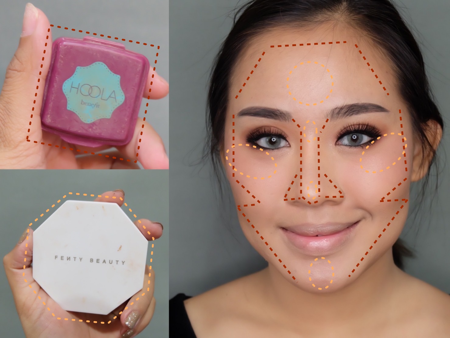 เก็บกรอบหน้าด้วย Hoola Benefit ปัดบริเวณกรอบหน้า และสันจมูกด้านข้าง และลงไฮไลท์วันนี้ไอซ์ใช้เป็น