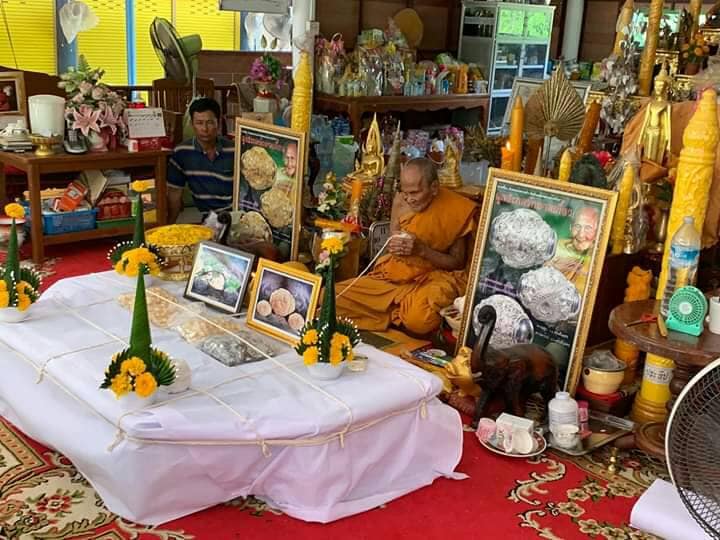 หลวงปู่ทำการประจุพลังลงอาคมธาตุทั้ง ๔ (ดิน น้ำ ลม ไฟ)