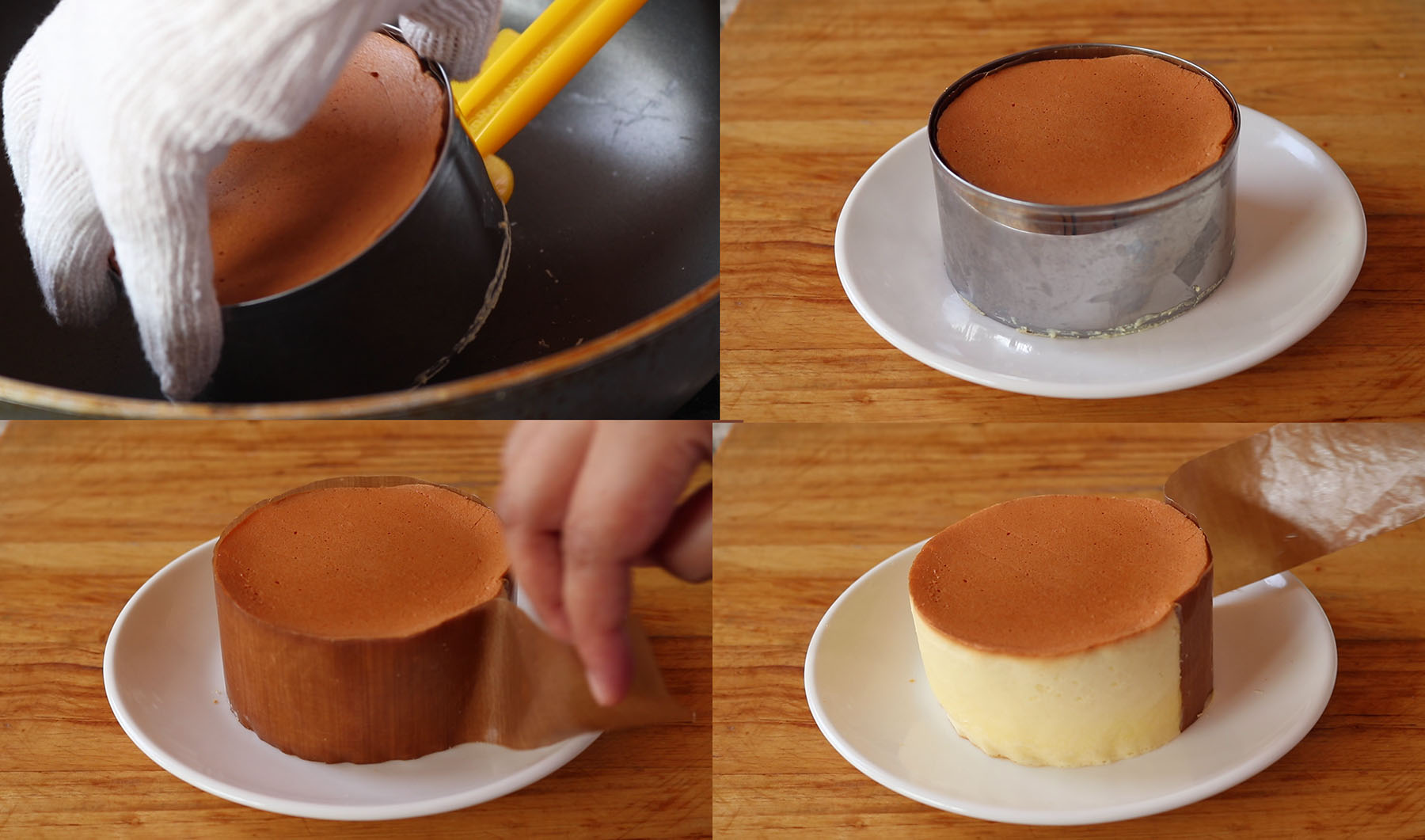 6.พอสุกแล้ว ตักใส่จานเอาแผ่นรองด้านข้างออก