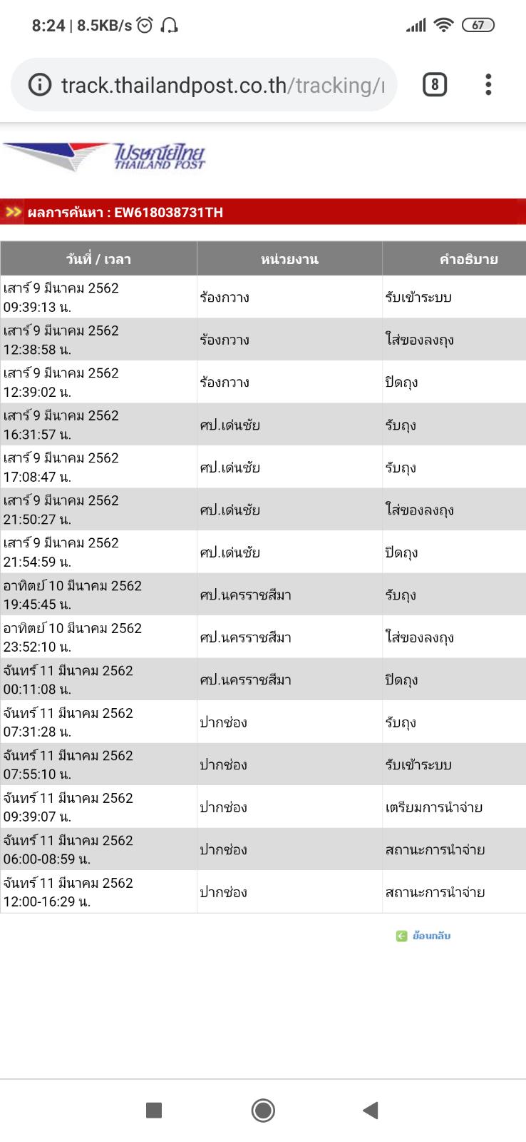 EMS จากลำปาง-ไป-กรุงเทพฯ รอนานมากไม่อัพเดทสถานะการส่งของ