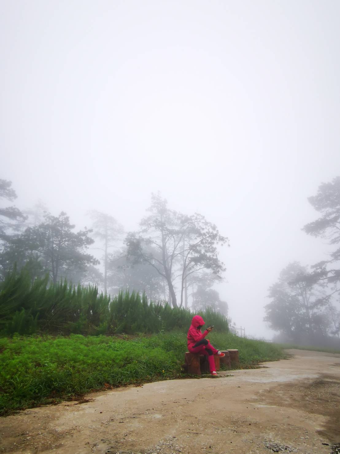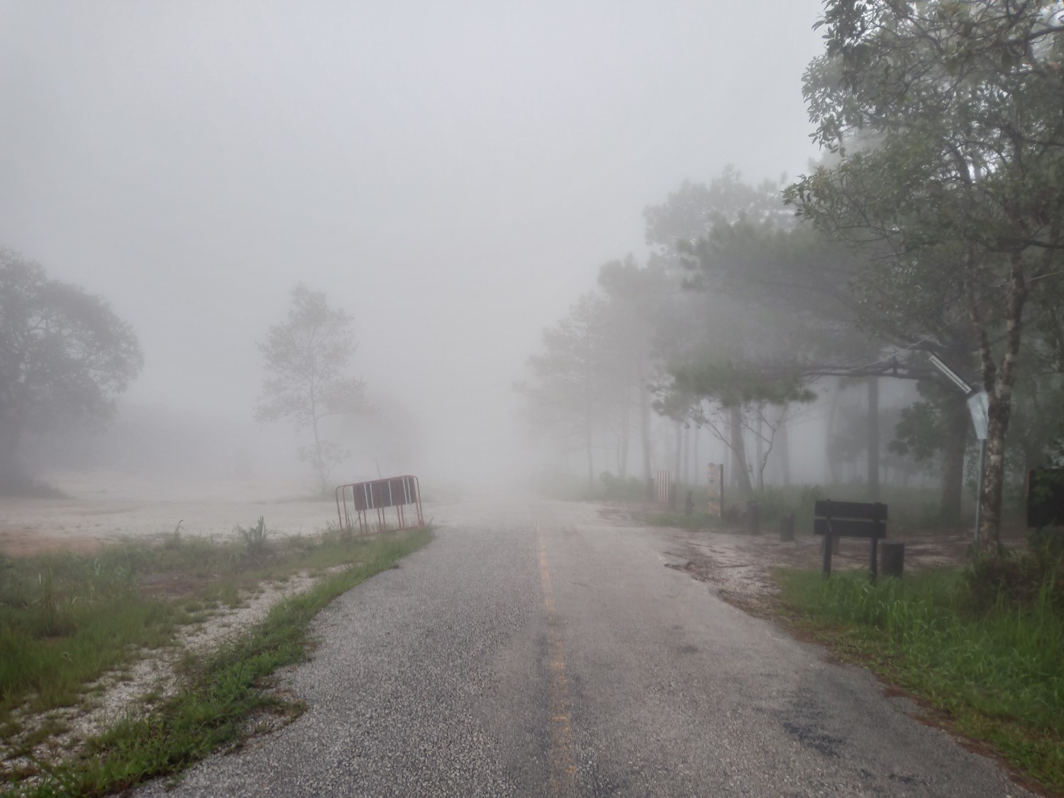 เช้านี้ข้างล่างฟ้าเปิดนะ แต่พอขึ้นไปในความสูงระดับนึง เราจะเข้าไปอยู่ในหมอก