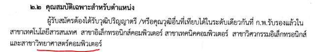 ผมโทรไปสอบถามทางหน่วยงาน หน่วยงานบอกว่า คุณสมบัติสาขาไม่ตรง ต้องเป็น วิทยาศาสตร์คอมพิวเตอร์