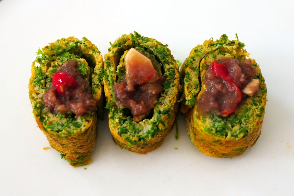 ได้ไข่ชะอมม้วนมา 4 ชิ้น