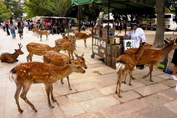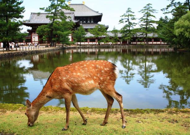 สวนสาธารณะในเมืองนาระเป็นสถานที่ท่องเที่ยวยอดนิยม ที่นักท่องเที่ยวสามารถชื่นชมกับฝูงกวางที่เดินเที่ยวเล่นอย่างอิสระ ช่วงนี้เป็นฤดูกาลที่กวางตกลูก และลูกกวางตัวน้อยก็ได้กลายเป็นขวัญใจของนักท่องเที่ยว จนหลายคนอดไม่ได้ที่จะสัมผัสลูบคลำด้วยความเอ็นดู