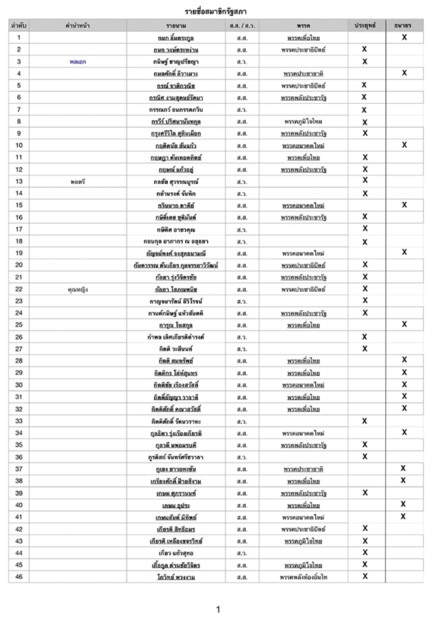 ดูชัดๆ เรียงรายชื่อ สส. , สว. ใครโหวต เลือก ธราธร ใครโหวต เลือก พล.อ.ประยุทธ เป็นนายก