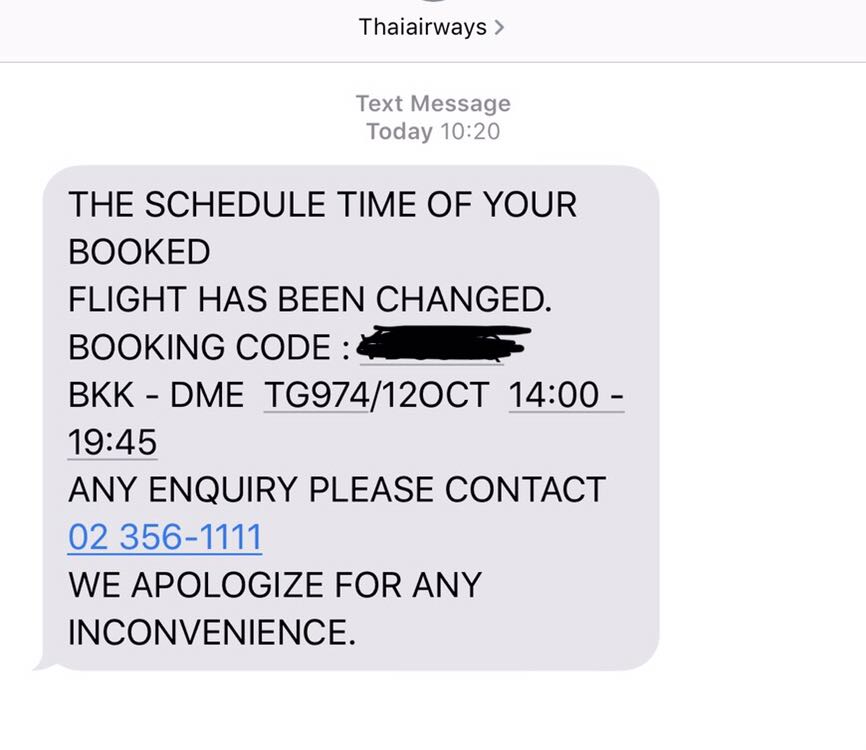 เจอการบินไทยเลื่อนไฟลท์แบบนี้ เซ็งจริงๆค่ะ